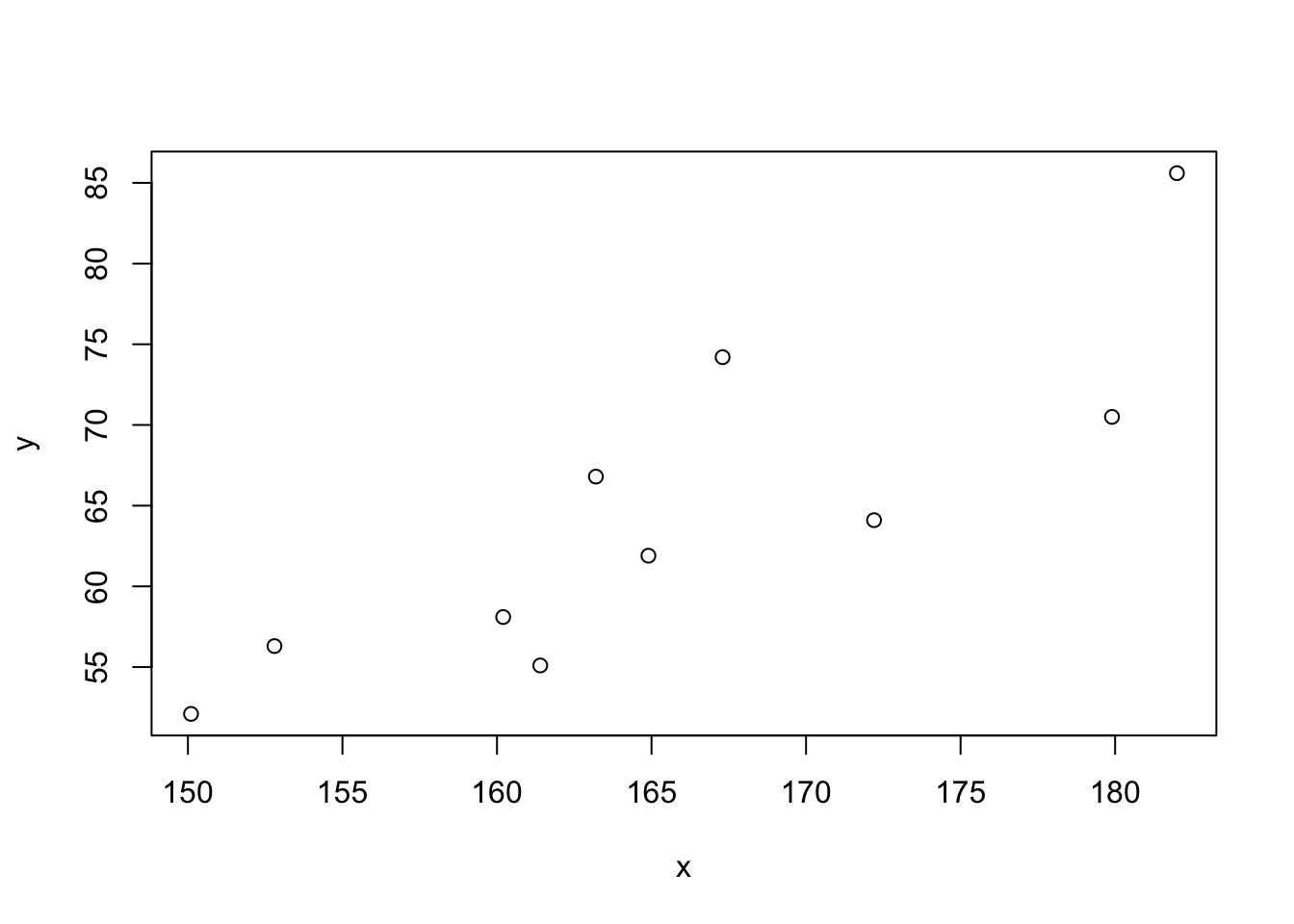 体重\(y\): 56.3, 52.1, 85.6, 66.8, 74.2, 58.1, 61.9, 55.1, 70.5, 64.1